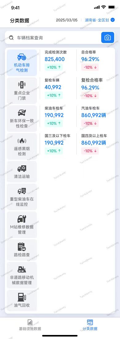 功能延伸:涵盖重点企业门禁、新车环保一致性检查、遥感黑烟检测、清洁运输、重型柴油车在线监控、M站维修数据管理、路检路查、非道路机械监管、油气回收等全链条模块,支持车辆档案查询(搜索+拍照识别),满足移动办公场景。