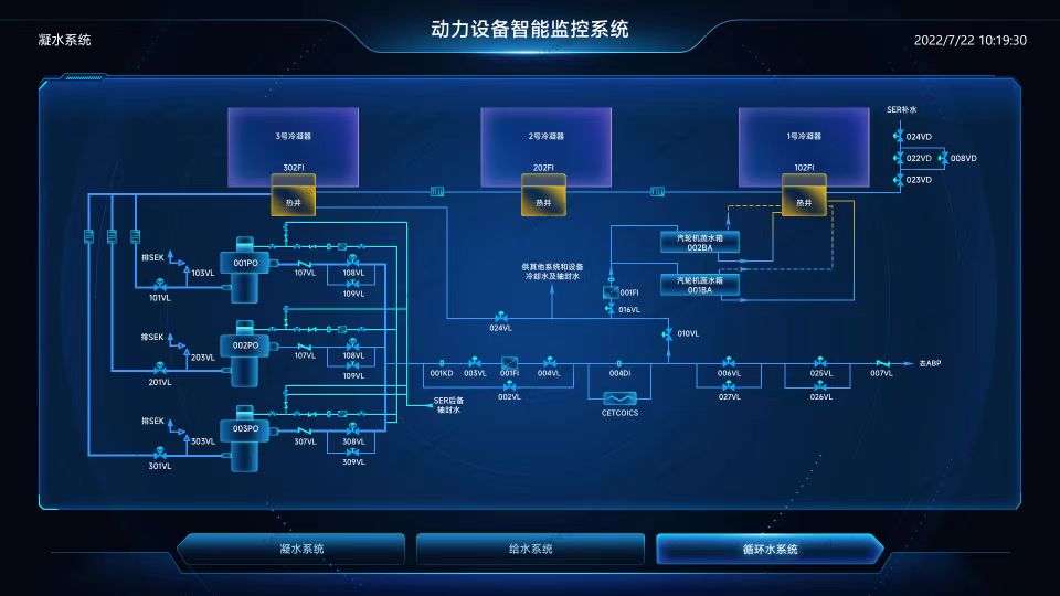 719动力设备智能监控系统是一套先进的设备管理平台,具备多维度监控与智能分析能力。系统设有直观的可视化界面,可呈现动力设备整体运行架构,涵盖安全壳、EAS、HRS等系统,实时监测设备状态,如当前运行工况、报警时间,精准定位故障,展示系统故障信息与部件故障详情 。