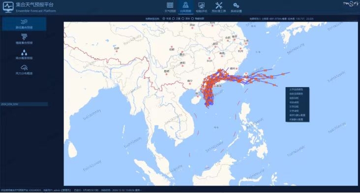 系统核心功能围绕航天发射气象保障需求设计,涵盖多元业务模块:通过数据采集模块汇聚发射场及周边关键气象数据,为预报分析奠定基础;依托集合预报方法实现精细化气象预测,重点支撑发射窗口气象条件研判;针对台风等影响发射安全的灾害性天气,专项开发台风预报模块,精准预测其路径及对发射场的潜在影响;结合产品后处理与检验评估功能,提升预报产品的可靠性与适用性。