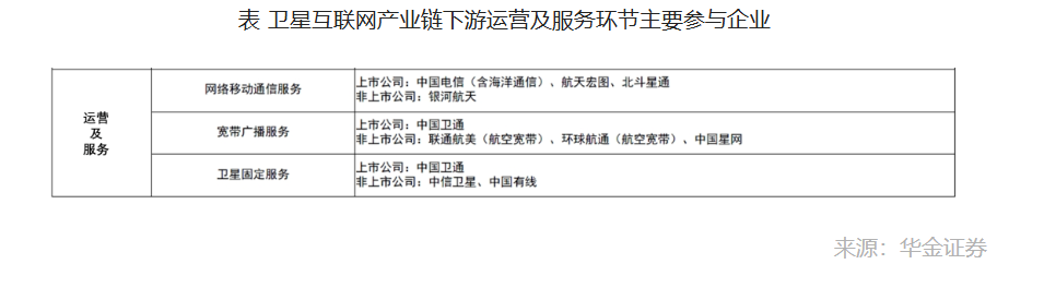 表 卫星互联网产业链下游运营及服务环节主要参与企业