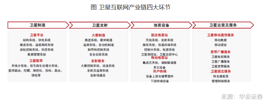 运营及服务是卫星互联网产业链的四大环节之一,其主要包含卫星移动通信服务、宽带广播服务以及卫星固定服务等: