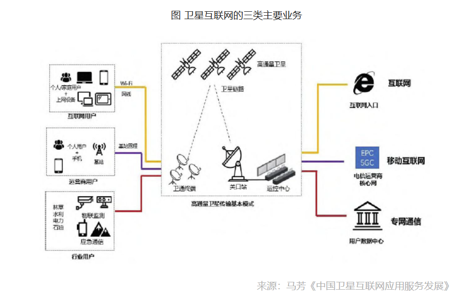 从以上主要应用场景的描述可以看出,卫星互联网的下游应用主要有三类业务:
