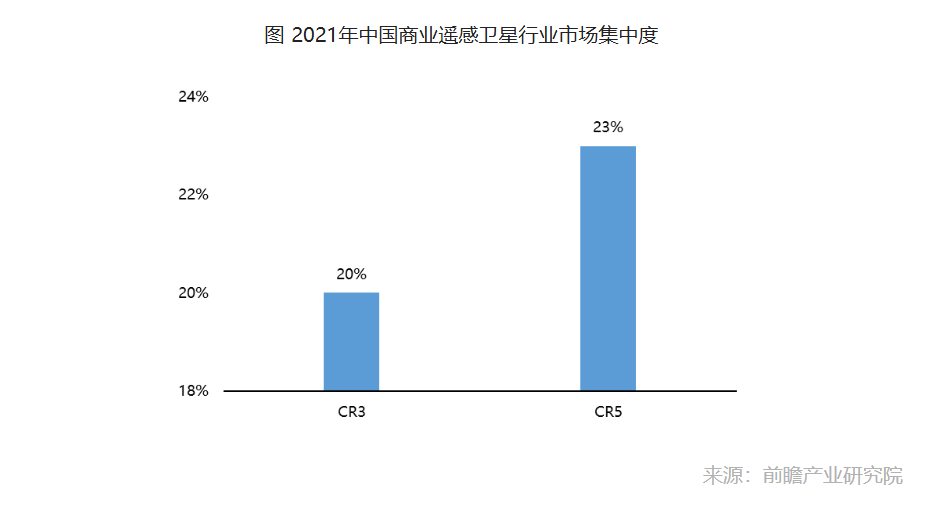 商业遥感卫星的蓬勃发展,促进了卫星制造商业化和卫星遥感图像的商业应用。面对国内遥感卫星数据巨大的市场,遥感服务商业化方兴未艾,面向政府、企业和个人的应用市场持续扩大。目前,我国商业遥感卫星行业由于技术要求较高,行业内企业数量有限,部分企业由于布局较早,在某些细分领域已产生了优势,例如四维图新基于遥感数据开发的电子地图业务国内领先;航天宏图商业遥感卫星运营业务覆盖度位于行业前列;中科星图作为国内最早开展数字地球业务的企业,已开拓了下游诸多行业的应用。但综合看来,我国目前商业遥感卫星市场集中度仍偏低,2021年,CR3约为20%,CR5约为23%,未来随着政策加持、技术进步,或出现马太效应局面,市场集中度可能进一步提高。